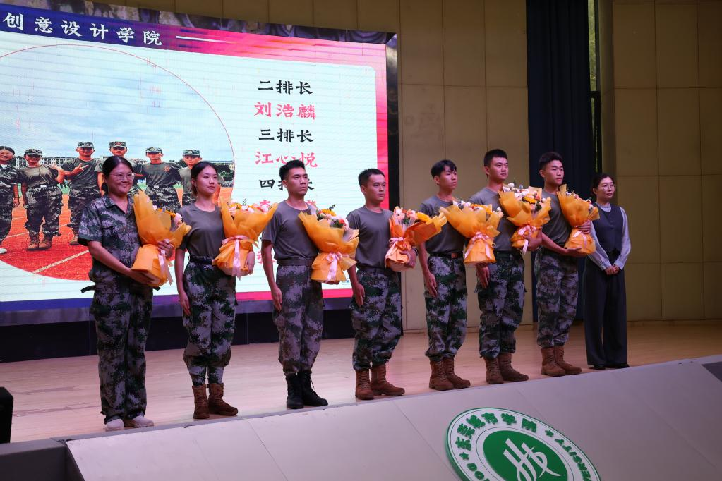 紧接着,由何帅森副院长为七连的指导员和教官们送上鲜花。在过去的十五天里,他们以严谨的作风、过硬的素养,带领同学们锤炼意志、磨砺品格,圆满完成了军训任务。