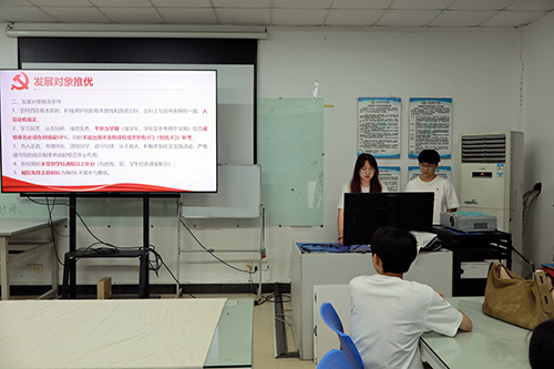 会议伊始,丘炜玉同学详细介绍了入党积极分子的推优条件、推优流程及各班入党积极分子推优指标等事项。随后,卢正平书记对本次拟发展对象推优工作进行了补充发言。