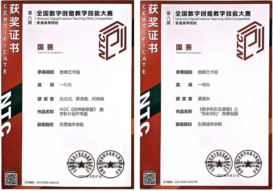 9月27日,从长沙传来喜讯,我院教师黄嘉琳、赵成成团队在第八届全国数字创意教学技能大赛全国数字创意教学技能大赛上最终斩获两项国家级一等奖,这是我院在该项赛事的最好成绩!