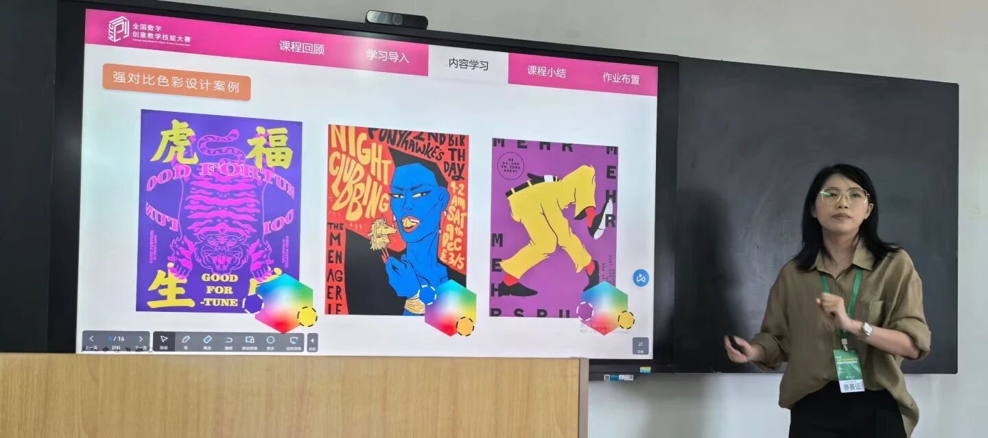 9 月 26 日,创意设计学院数字媒体艺术系专任教师黄嘉琳、赵成成抵达比赛现场后,凭借扎实的教学功底呈现课堂内容,在竞争中展现教学思路与能力。其课堂导入设计、重难点突破方法均体现对教学的深入研究与实践探索。